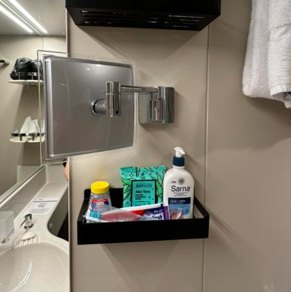 Maximize your cabin space with these magnetic shelves that keep cruise clutter in the bathroom and tables organized.